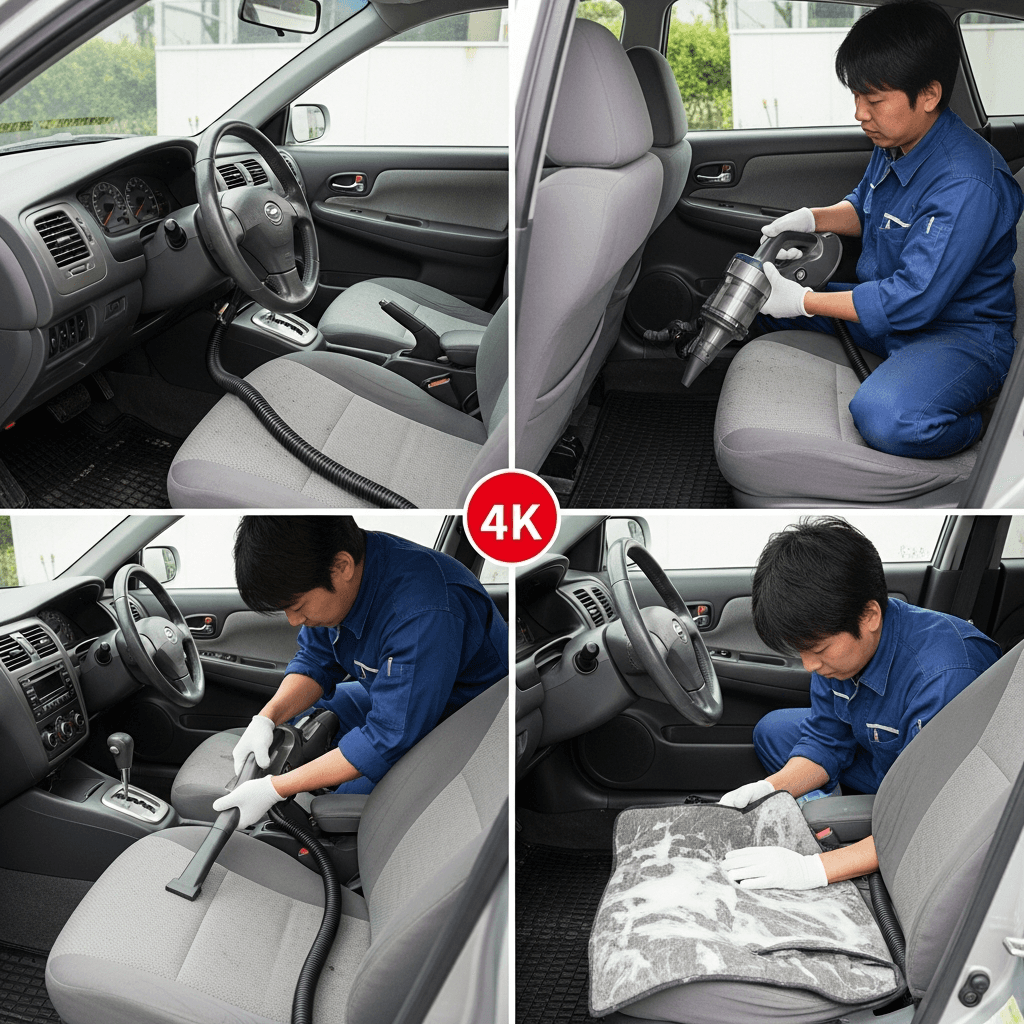 ファミリアは第一印象が査定の8割を決めます。シート隙間のゴミ除去、マット洗浄、樹脂パーツ艶出しで新車級の清潔感に。特に臭いゼロなら「禁煙車」扱いで+5~8万円UP。