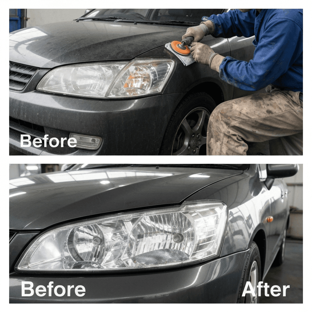 ヘッドライト黄ばみ除去+ボディ鉄粉除去で輝き復活!