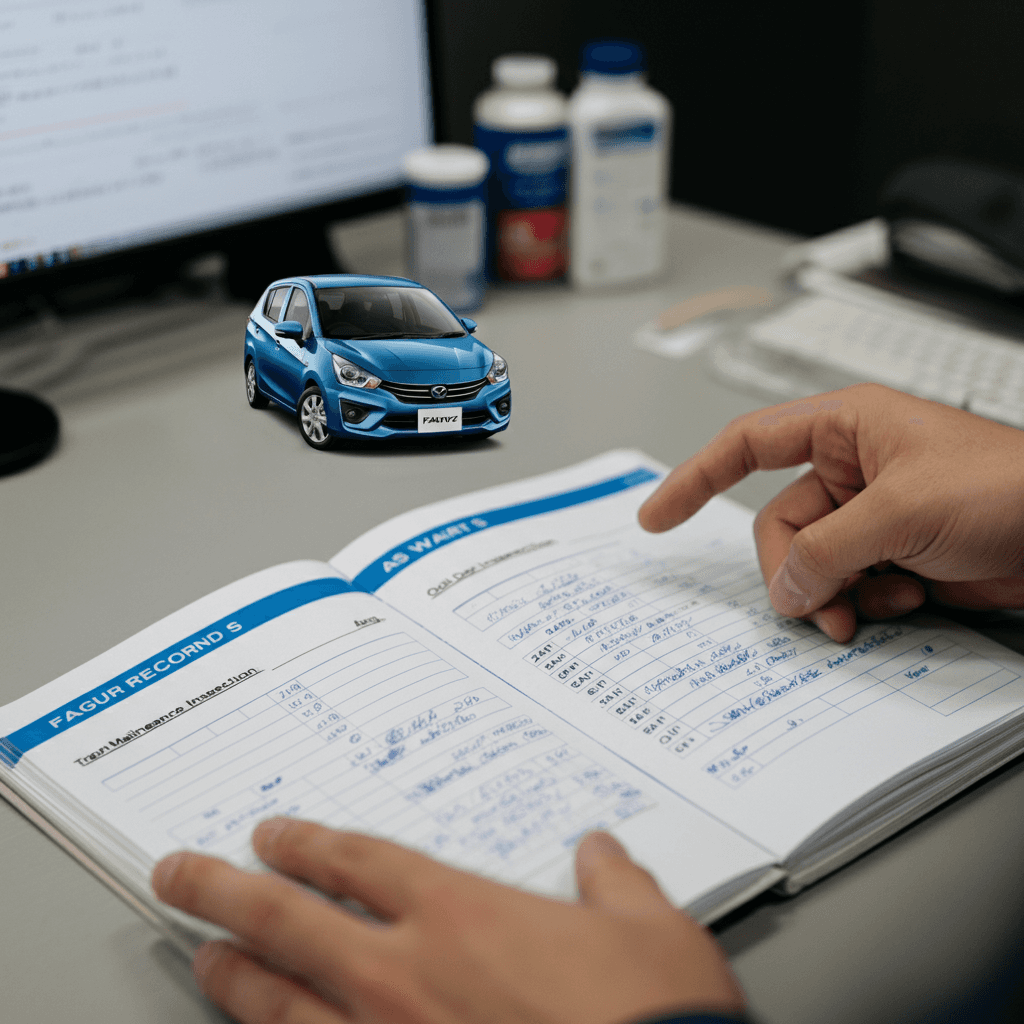 ファミリアS-ワゴンの整備記録簿に定期点検(12ヶ月・24ヶ月)の履歴が全て記載されていれば「管理の行き届いた車」と高評価。特にエンジンオイル交換履歴は重要で+6~9万円の効果。