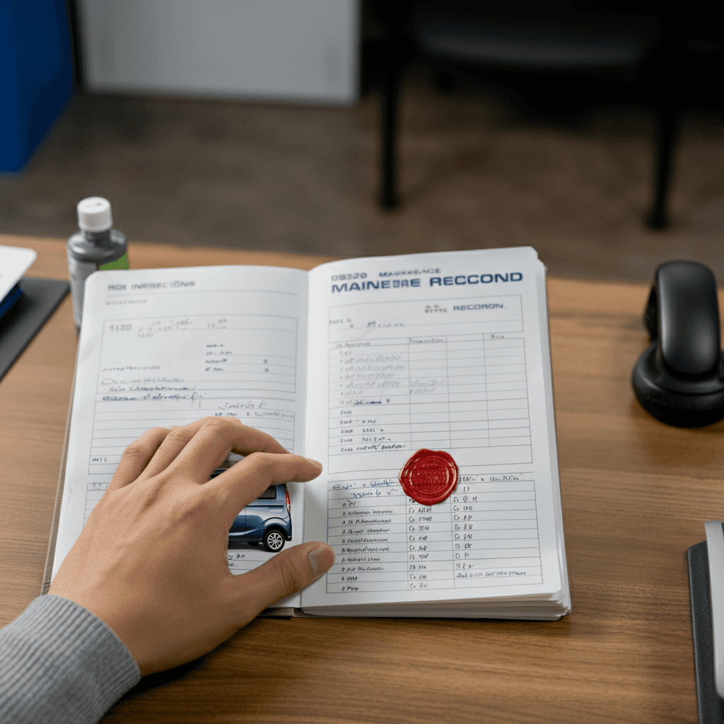 ファミリアバンの整備記録簿に定期点検(12ヶ月・24ヶ月)の履歴が全て記載されていれば「管理の行き届いた車」と高評価。特にエンジンオイル交換履歴は重要で+6~9万円の効果。