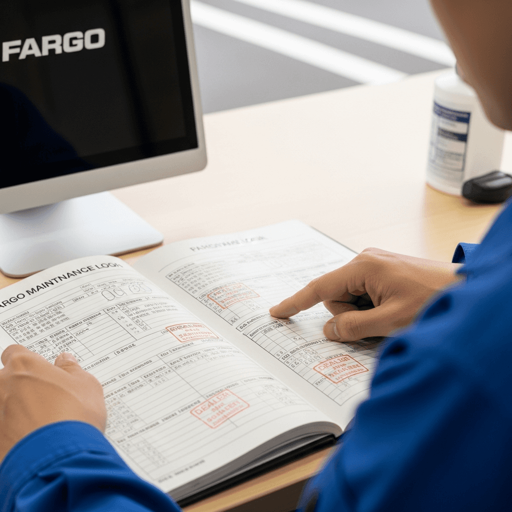 ファーゴトラックの整備記録簿に定期点検(12ヶ月・24ヶ月)の履歴が全て記載されていれば「管理の行き届いた車」と高評価。特にエンジンオイル交換履歴は重要で+6~9万円の効果。