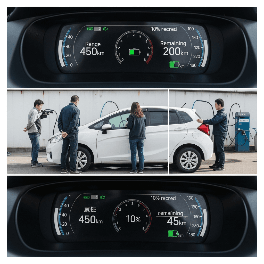 満充電から通常走行→残量10%までの実測データ(写真+メモ)を提示すれば「カタログ値通り」の信頼獲得。航続距離不安が購入障壁のEV車で+5~8万円の効果。