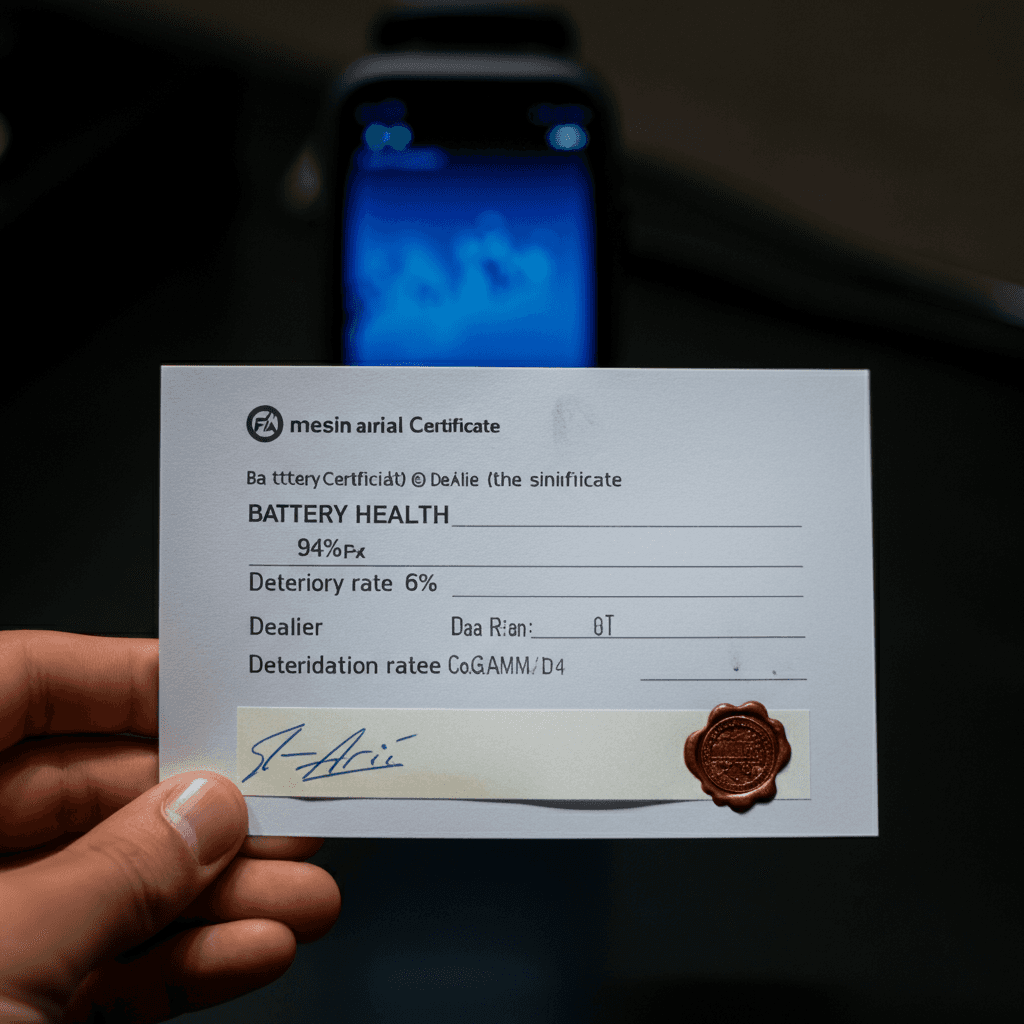 EVの最大不安はバッテリー劣化。ディーラーでSOH(バッテリー健全性)診断を受け、「90%以上」の証明書があれば査定額が劇的にUP。診断費用5,000円で+12~20万円のリターンが期待できます。