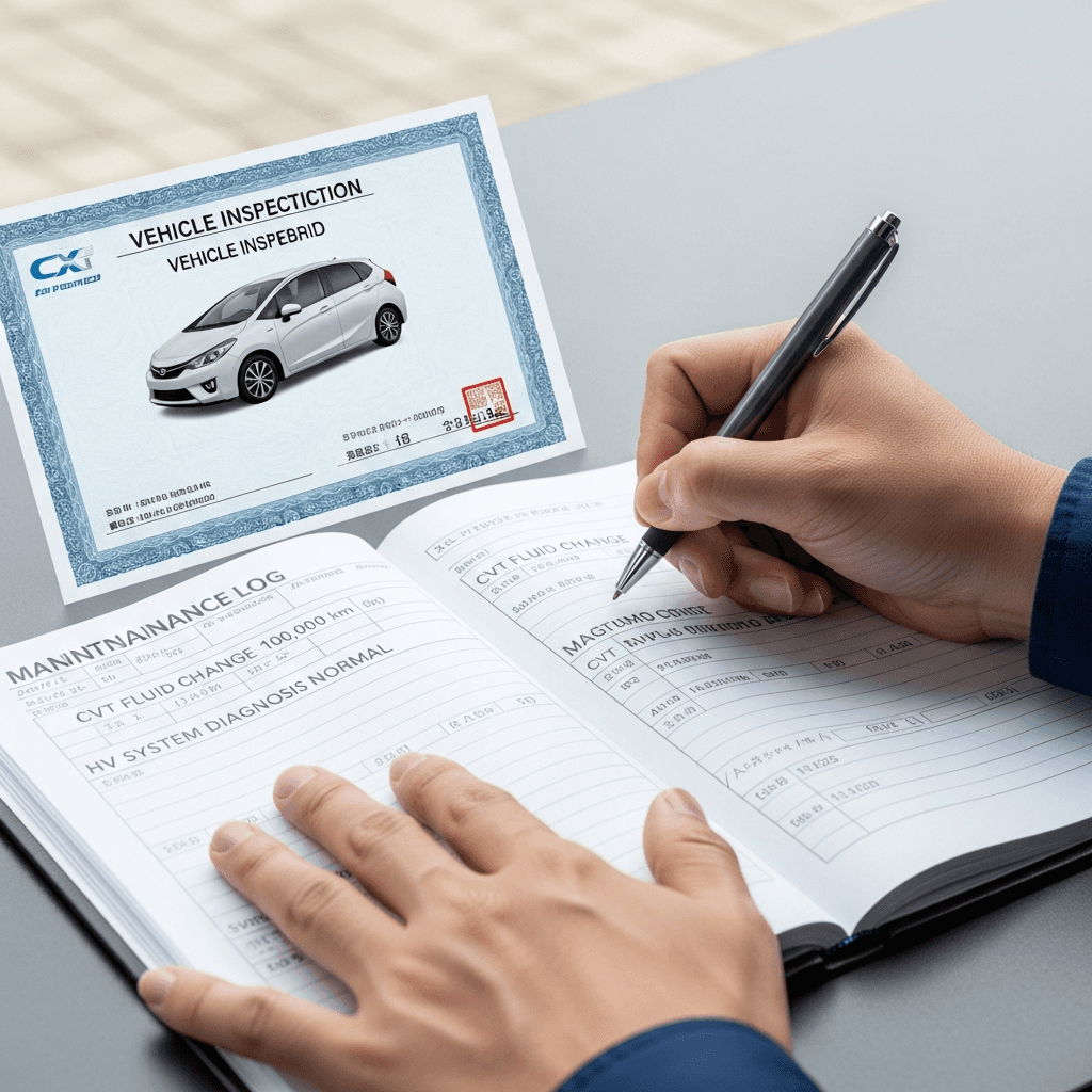 整備記録簿にCVTフルード交換やHVシステム診断の履歴を明記。特に「10万km時CVT交換済」「バッテリー冷却系点検済」の記載があれば査定士の信頼度が急上昇し、+6~10万円の価値創出が可能です。