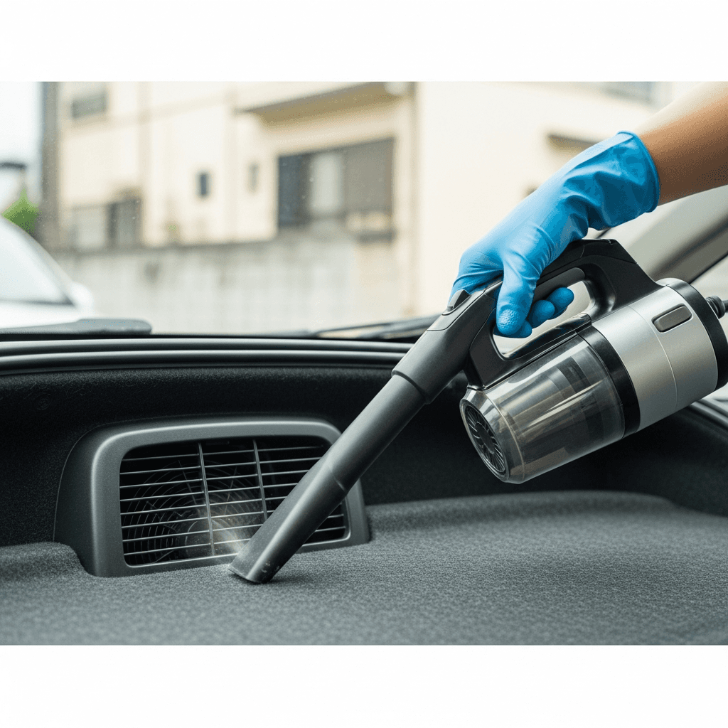 フィットハイブリッドのハイブリッドシステムは冷却が命。後席下または荷室のバッテリー冷却ファン吸入口を掃除機で丁寧に清掃すれば「バッテリー管理完璧」の印象を与え、HV特有の不安を払拭。5分の作業で+5~8万円の効果が期待できます。