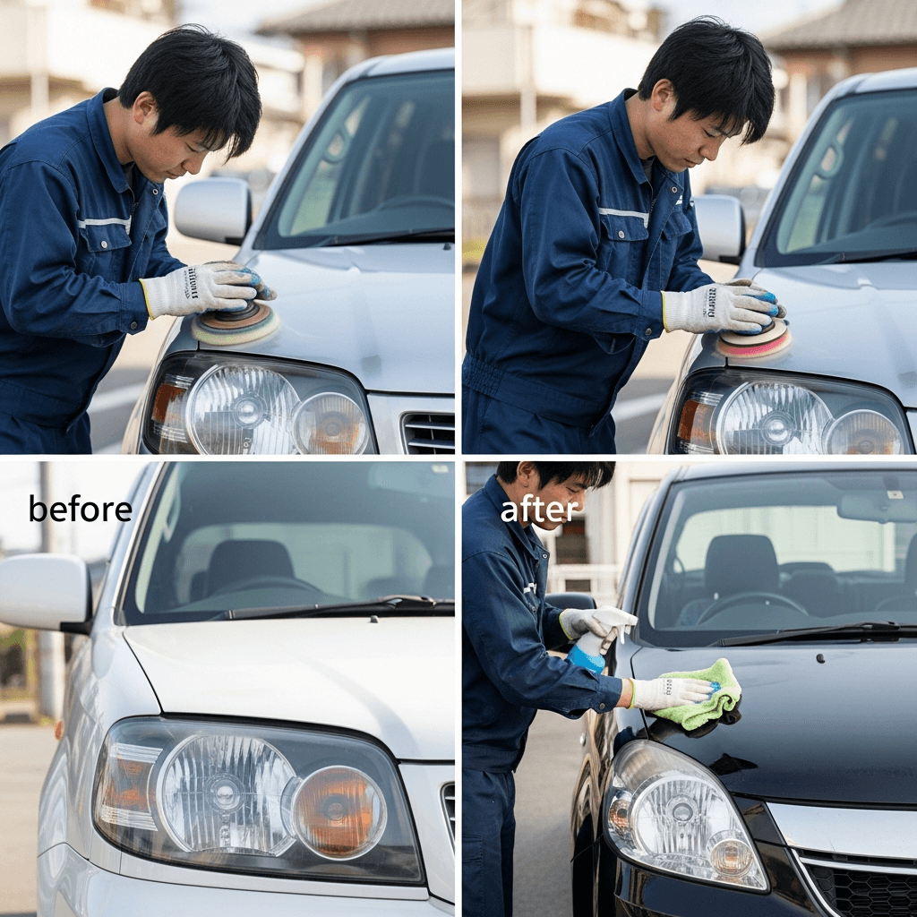 フレアはヘッドライトの黄ばみとボディの鉄粉が第一印象を損ねます。研磨+鉄粉除去クリーナー+ワックスで輝きを取り戻せば「程度良好」と判断され+4~7万円の効果。