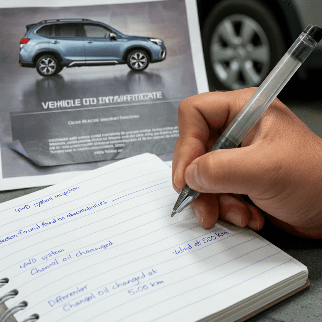 フォレスターのようなSUVは4WD性能が価値の源泉。4WDシステム点検とデフオイル交換記録があれば「オフロード性能維持」と高評価され、+8~12万円の査定UPが期待できます。