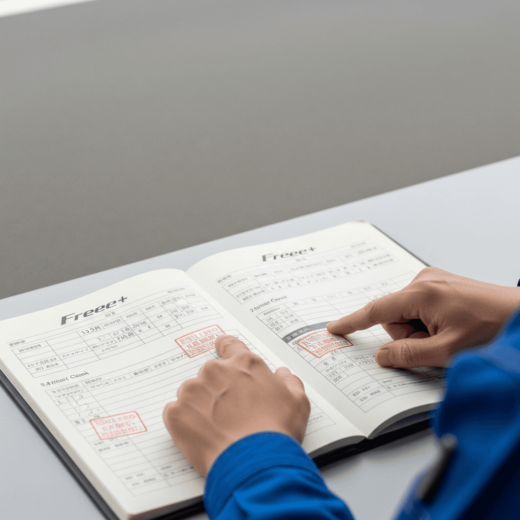 フリード+の整備記録簿に定期点検(12ヶ月・24ヶ月)の履歴が全て記載されていれば「管理の行き届いた車」と高評価。特にエンジンオイル交換履歴は重要で+6~9万円の効果。