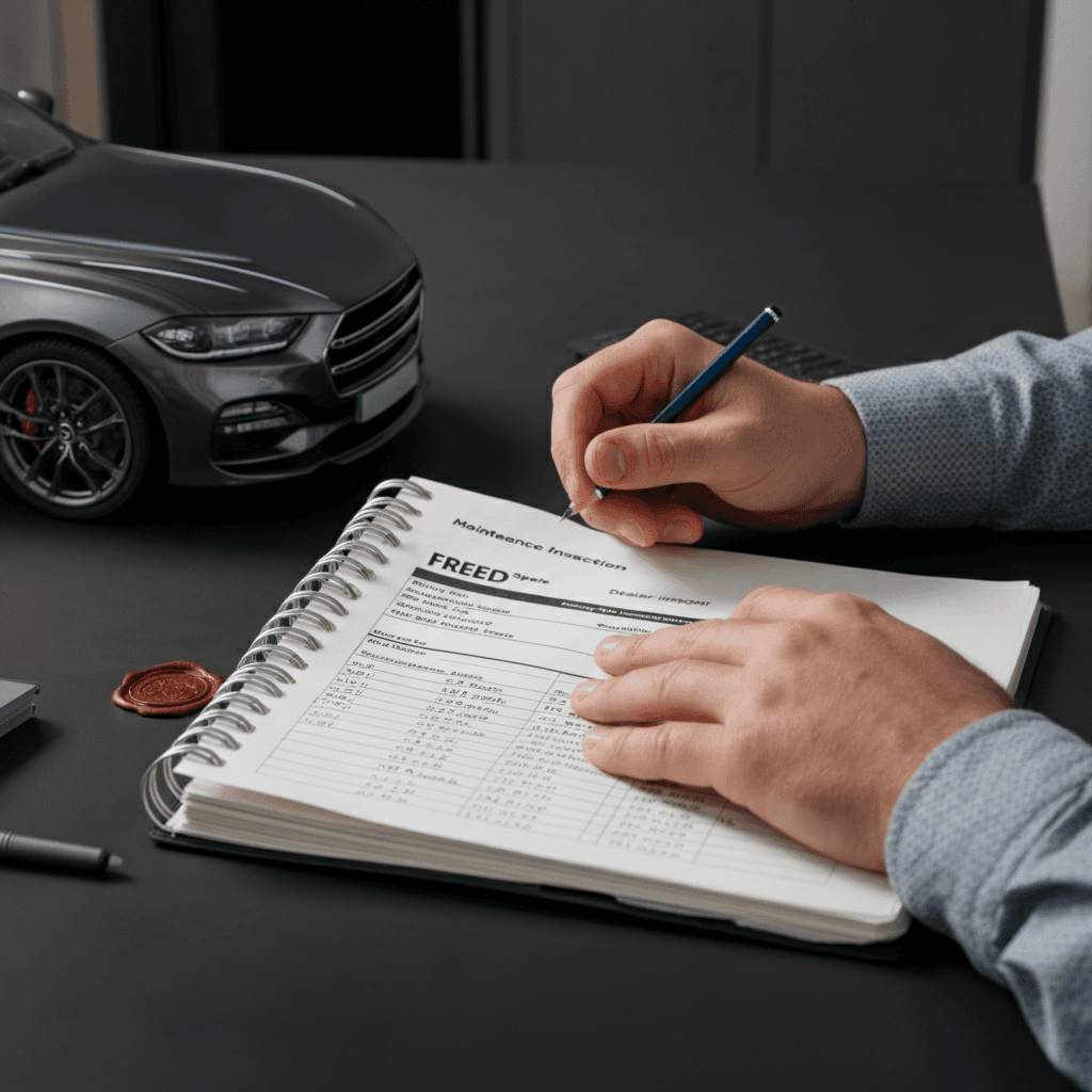 フリードスパイクの整備記録簿に定期点検(12ヶ月・24ヶ月)の履歴が全て記載されていれば「管理の行き届いた車」と高評価。特にエンジンオイル交換履歴は重要で+6~9万円の効果。