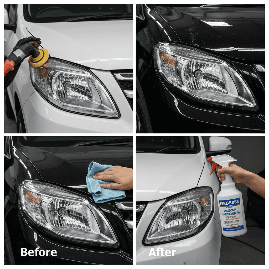 ヘッドライト黄ばみ除去+ボディ鉄粉除去で輝き復活!