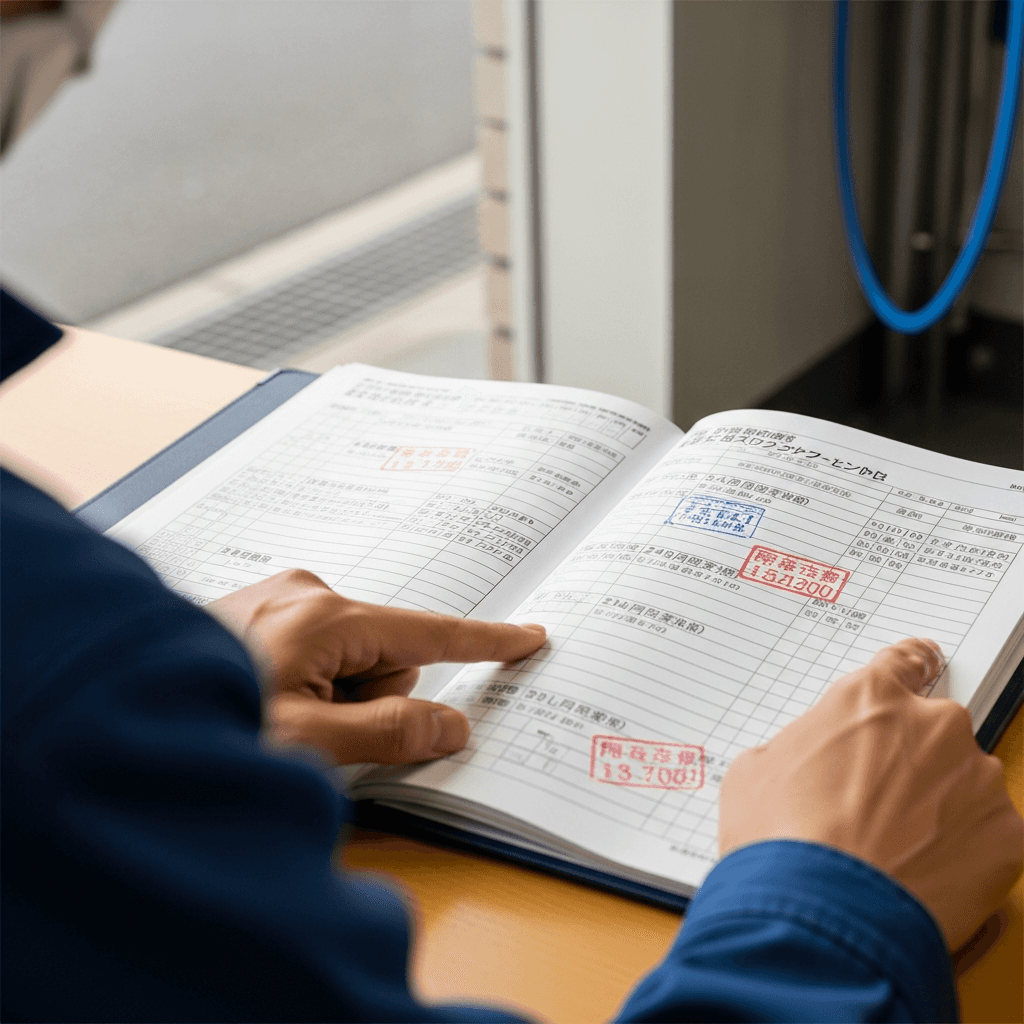FTOの整備記録簿に定期点検(12ヶ月・24ヶ月)の履歴が全て記載されていれば「管理の行き届いた車」と高評価。特にエンジンオイル交換履歴は重要で+6~9万円の効果。