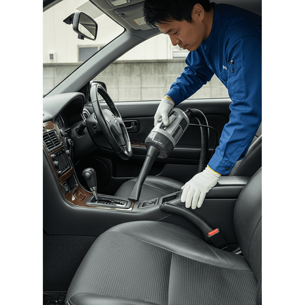 FTOは第一印象が査定の8割を決めます。シート隙間のゴミ除去、マット洗浄、樹脂パーツ艶出しで新車級の清潔感に。特に臭いゼロなら「禁煙車」扱いで+5~8万円UP。
