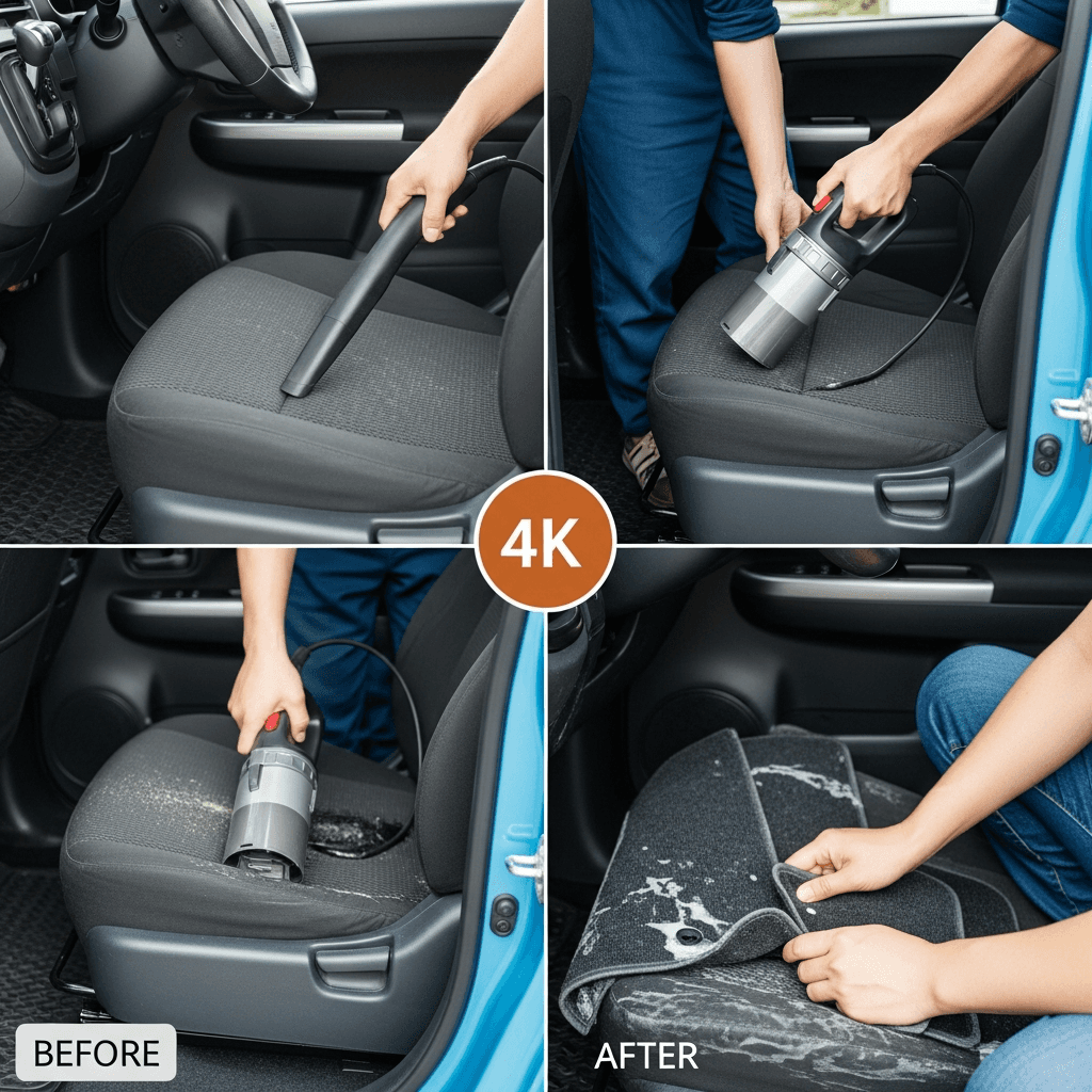 ファンカーゴは第一印象が査定の8割を決めます。シート隙間のゴミ除去、マット洗浄、樹脂パーツ艶出しで新車級の清潔感に。特に臭いゼロなら「禁煙車」扱いで+5~8万円UP。