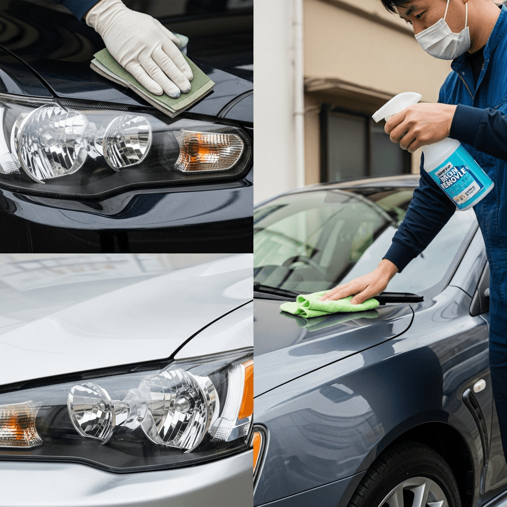 ヘッドライト黄ばみ除去+ボディ鉄粉除去で輝き復活!