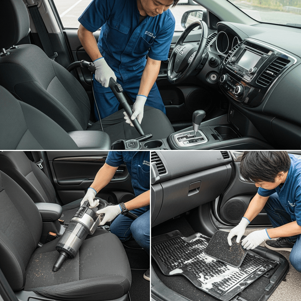ギャランフォルティススポーツバックは第一印象が査定の8割を決めます。シート隙間のゴミ除去、マット洗浄、樹脂パーツ艶出しで新車級の清潔感に。特に臭いゼロなら「禁煙車」扱いで+5~8万円UP。