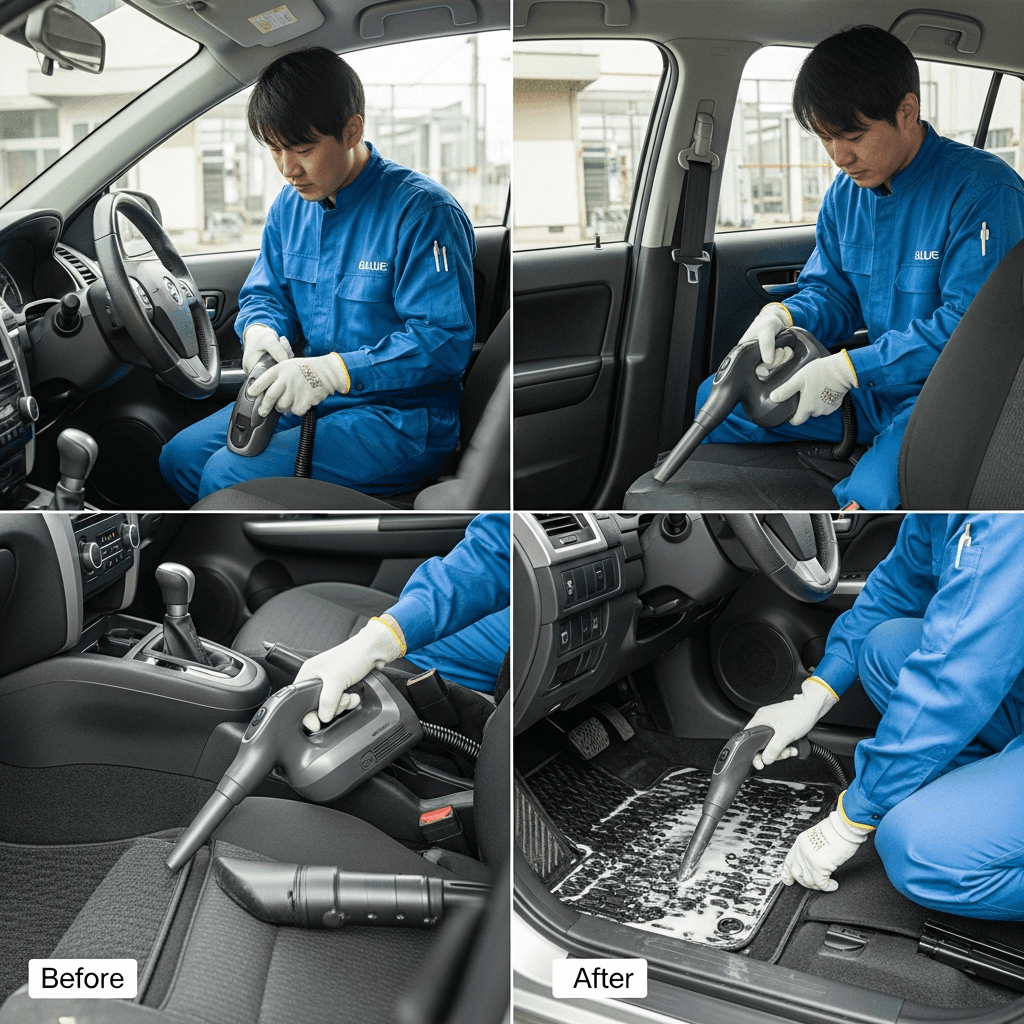 ガリュー204は第一印象が査定の8割を決めます。シート隙間のゴミ除去、マット洗浄、樹脂パーツ艶出しで新車級の清潔感に。特に臭いゼロなら「禁煙車」扱いで+5~8万円UP。