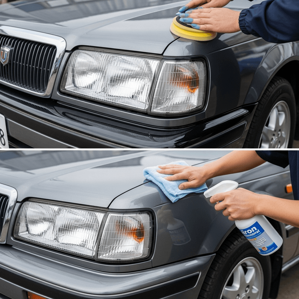 ヘッドライト黄ばみ除去+ボディ鉄粉除去で輝き復活!