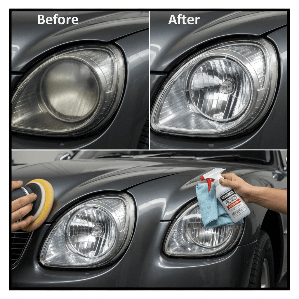 ヘッドライト黄ばみ除去+ボディ鉄粉除去で輝き復活!