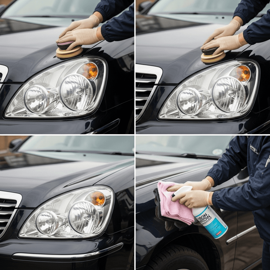 ヘッドライト黄ばみ除去+ボディ鉄粉除去で輝き復活!