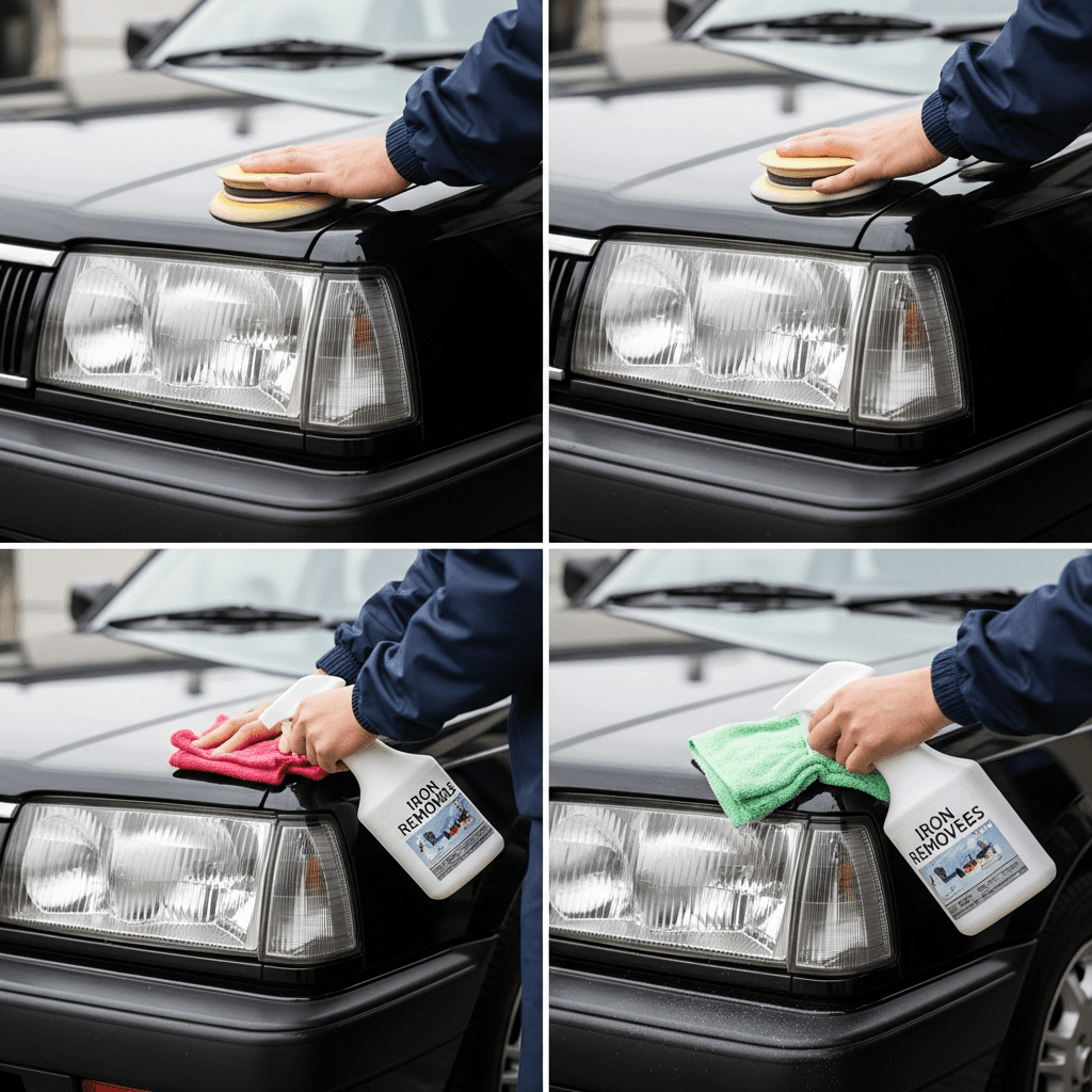 ヘッドライト黄ばみ除去+ボディ鉄粉除去で輝き復活!