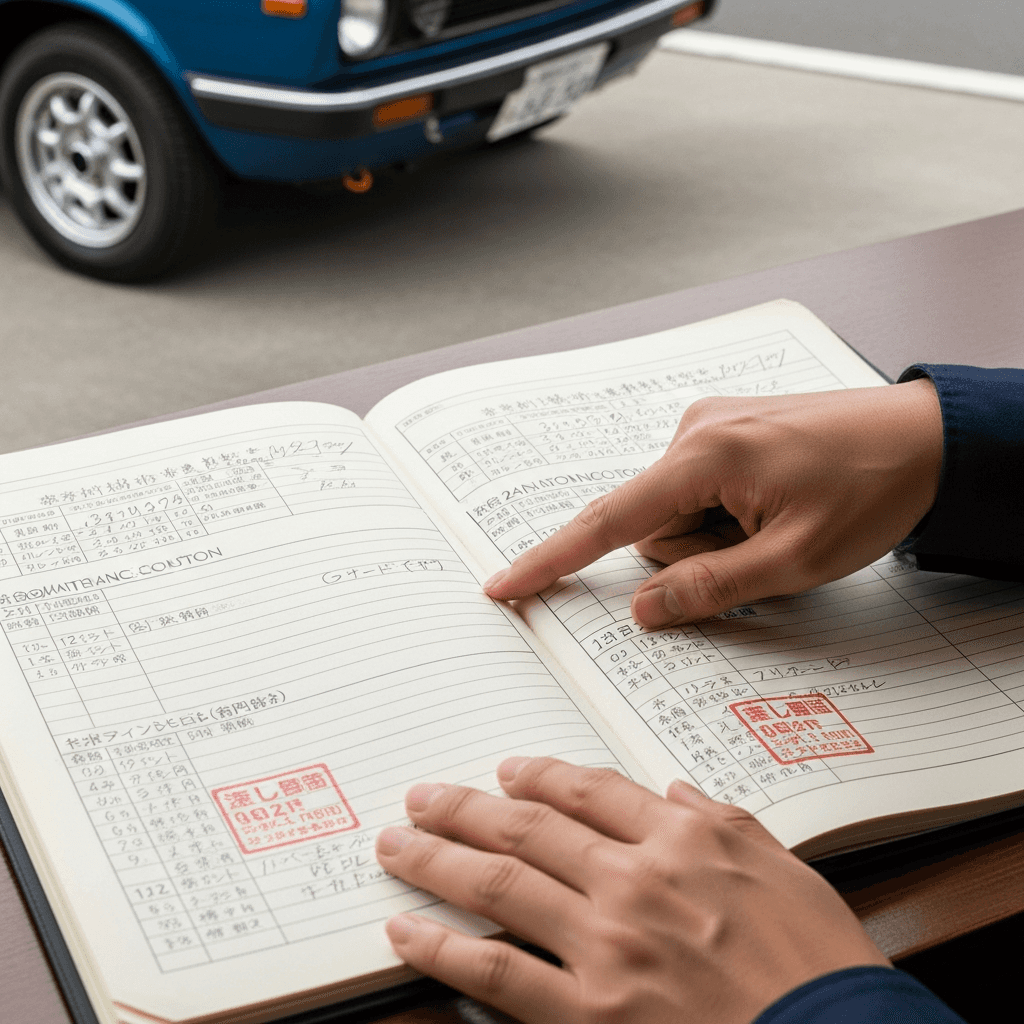 ジェミニクーペの整備記録簿に定期点検(12ヶ月・24ヶ月)の履歴が全て記載されていれば「管理の行き届いた車」と高評価。特にエンジンオイル交換履歴は重要で+6~9万円の効果。