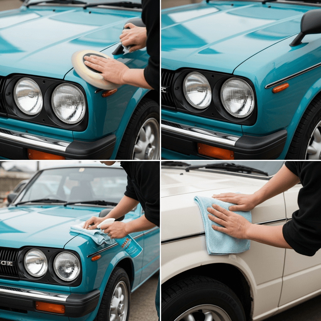 ジェミニクーペはヘッドライトの黄ばみとボディの鉄粉が第一印象を損ねます。研磨+鉄粉除去クリーナー+ワックスで輝きを取り戻せば「程度良好」と判断され+4~7万円の効果。