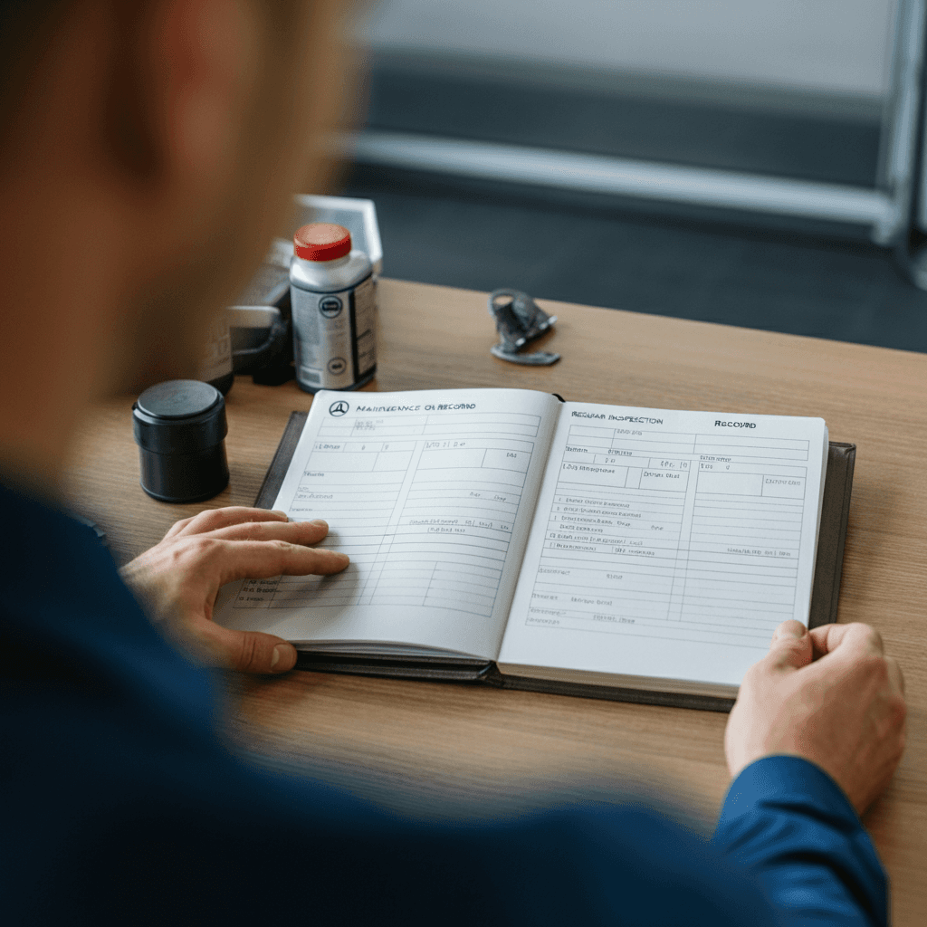 GLクラスの整備記録簿に定期点検(12ヶ月・24ヶ月)の履歴が全て記載されていれば「管理の行き届いた車」と高評価。特にエンジンオイル交換履歴は重要で+6~9万円の効果。
