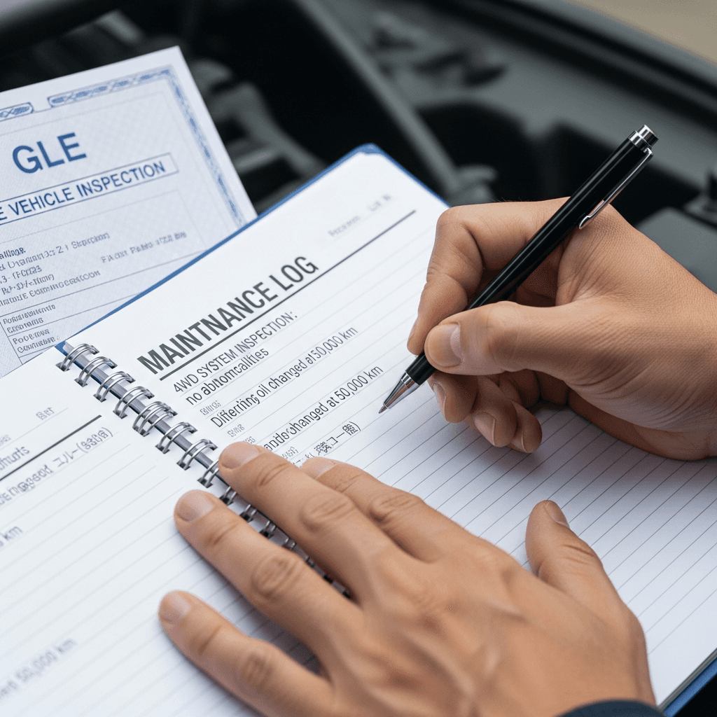 GLEのようなSUVは4WD性能が価値の源泉。4WDシステム点検とデフオイル交換記録があれば「オフロード性能維持」と高評価され、+8~12万円の査定UPが期待できます。
