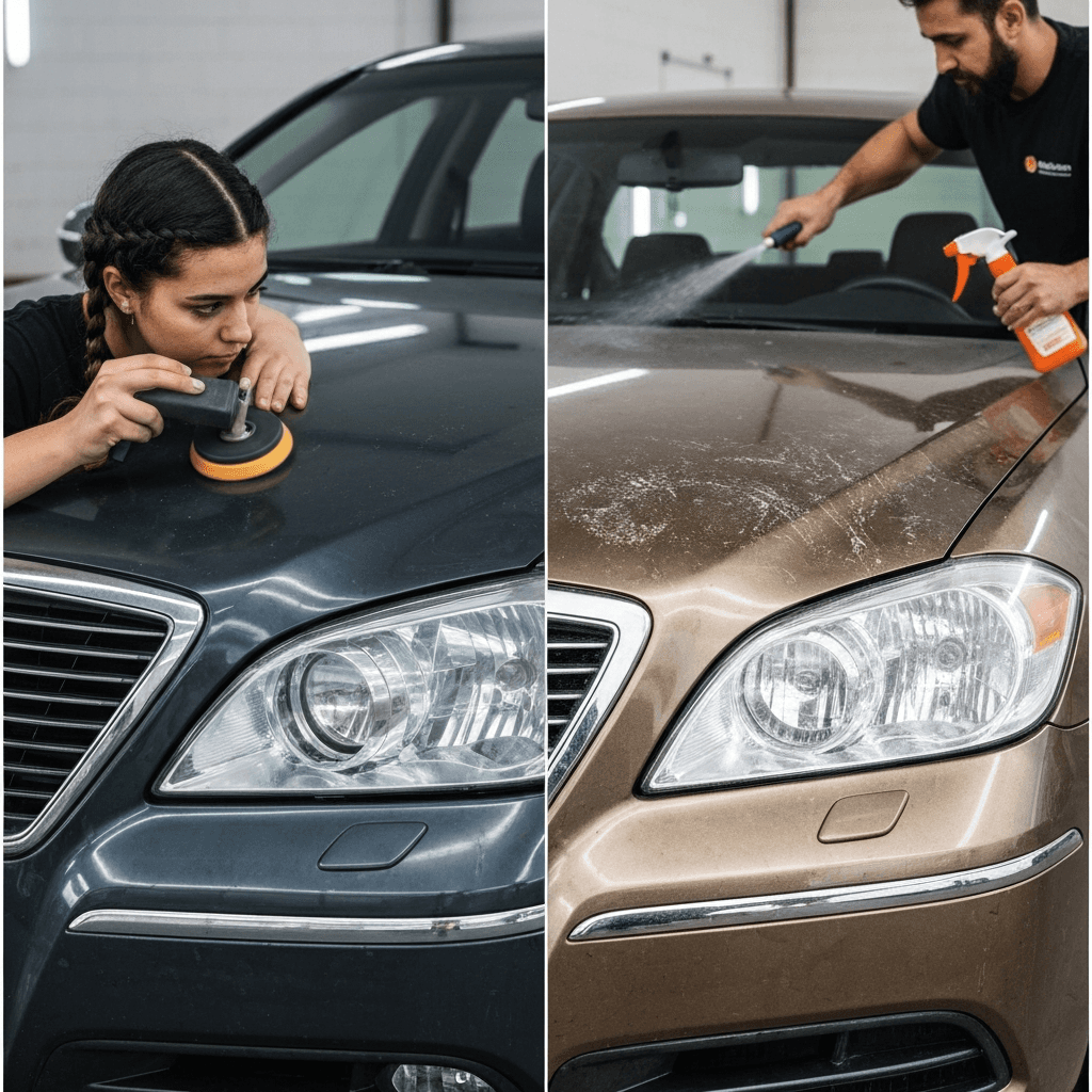 グロリアはヘッドライトの黄ばみとボディの鉄粉が第一印象を損ねます。研磨+鉄粉除去クリーナー+ワックスで輝きを取り戻せば「程度良好」と判断され+4~7万円の効果。