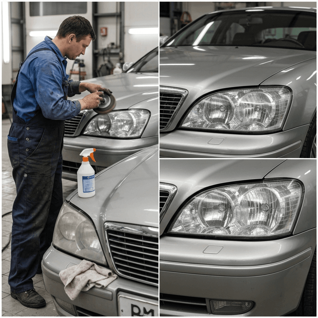 ヘッドライト黄ばみ除去+ボディ鉄粉除去で輝き復活!