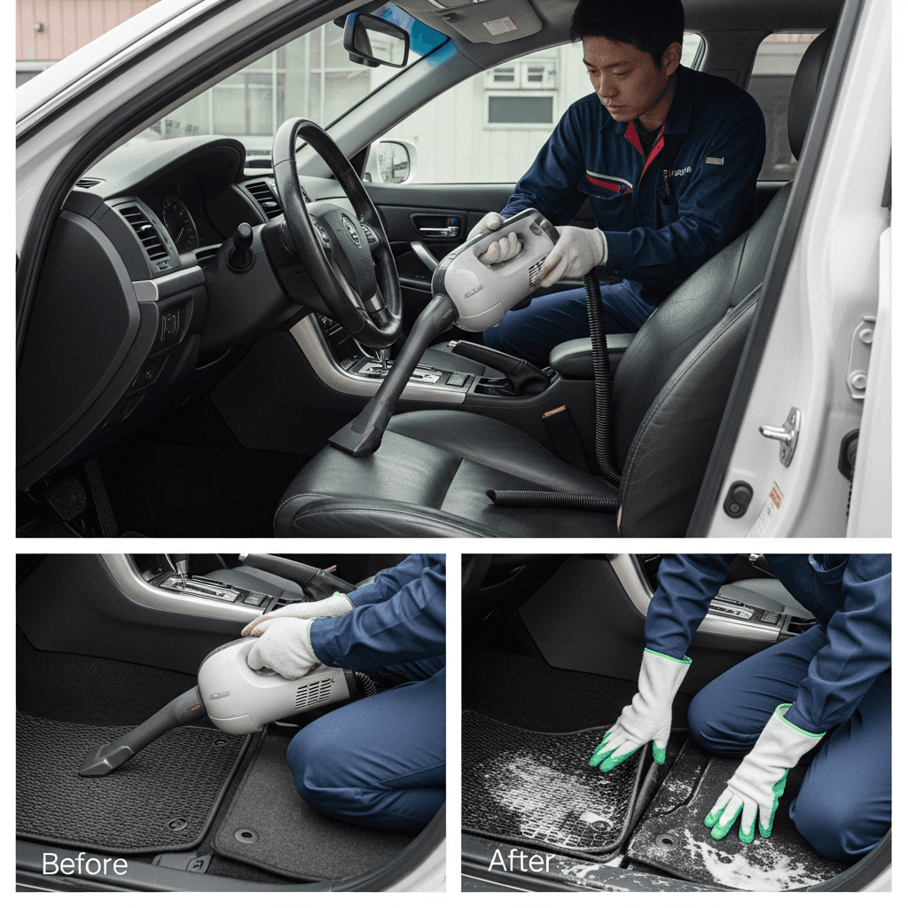 グロリアセダンは第一印象が査定の8割を決めます。シート隙間のゴミ除去、マット洗浄、樹脂パーツ艶出しで新車級の清潔感に。特に臭いゼロなら「禁煙車」扱いで+5~8万円UP。