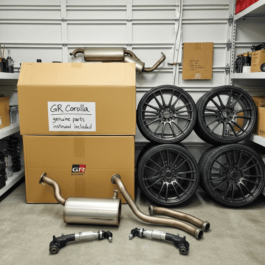 GRカローラはカスタム車両が多いですが、純正マフラー・サスペンション・ホイールが保管されていれば査定額は下がりません。「純正戻し可能」をアピールすることで+7~10万円の価値創出。