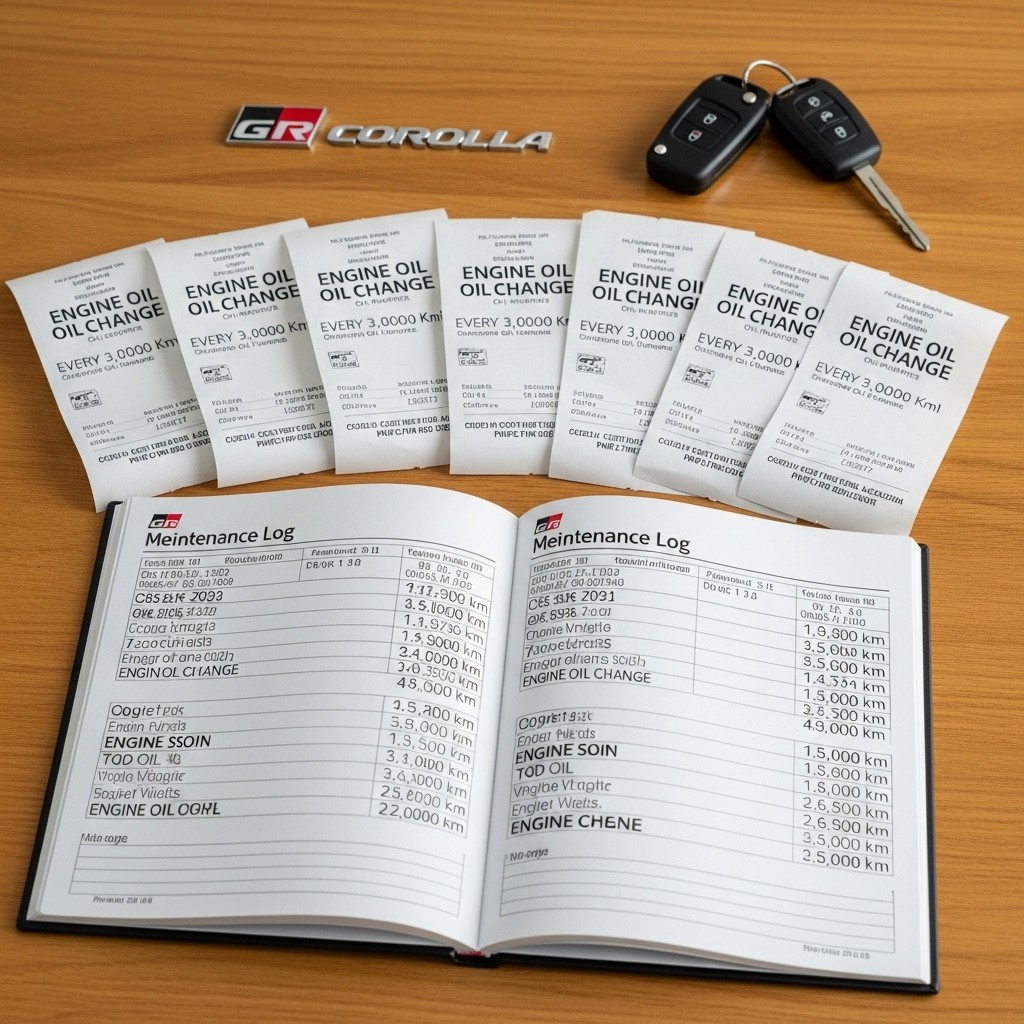 GRカローラはスポーツ走行を前提とした車。エンジンオイル交換を3,000~5,000km毎に実施した記録(レシート+整備記録簿)があれば「エンジン管理完璧」と評価され、査定額が大幅UP。+10~15万円の効果が期待できます。