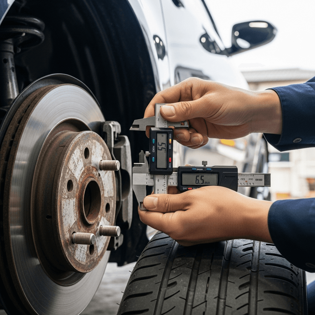 スポーツカーはブレーキとタイヤが査定の最重要項目。パッド残量6mm以上、タイヤ溝5mm以上を写真+ノギス測定値で証明すれば、「走行性能良好」の安心感を与え+8~12万円の評価UP。