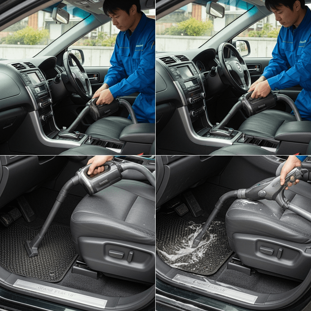 グランドエスクードは第一印象が査定の8割を決めます。シート隙間のゴミ除去、マット洗浄、樹脂パーツ艶出しで新車級の清潔感に。特に臭いゼロなら「禁煙車」扱いで+5~8万円UP。