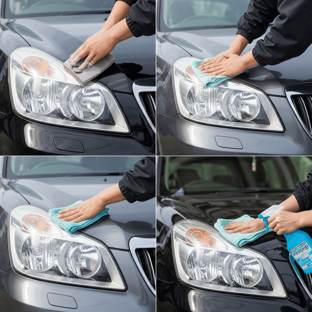 ヘッドライト黄ばみ除去+ボディ鉄粉除去で輝き復活!