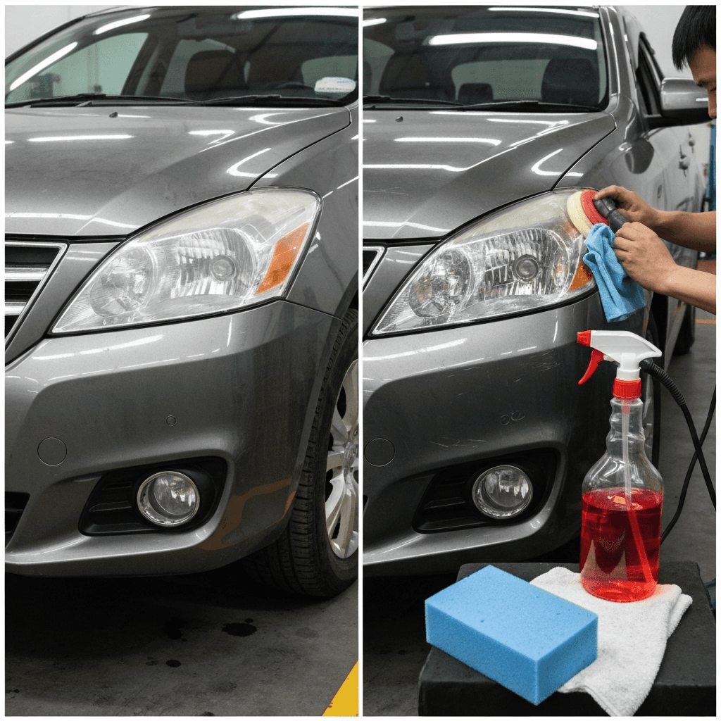 ヘッドライト黄ばみ除去+ボディ鉄粉除去で輝き復活!