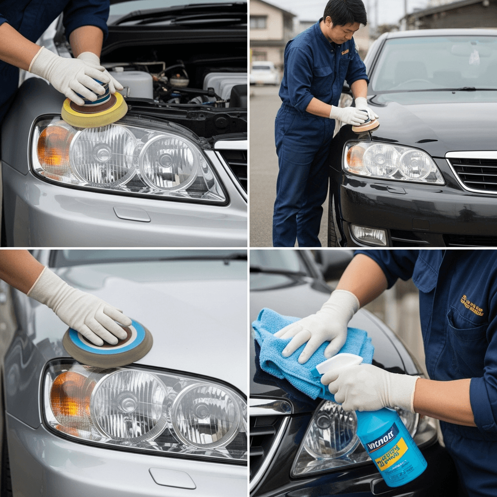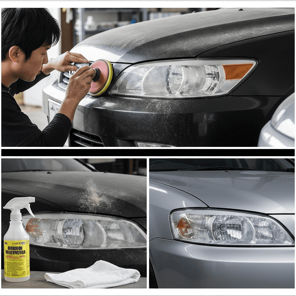 ヘッドライト黄ばみ除去+ボディ鉄粉除去で輝き復活!