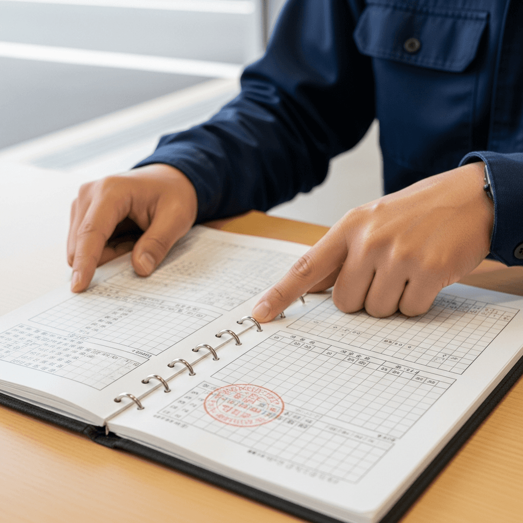 グランビアの整備記録簿に定期点検(12ヶ月・24ヶ月)の履歴が全て記載されていれば「管理の行き届いた車」と高評価。特にエンジンオイル交換履歴は重要で+6~9万円の効果。