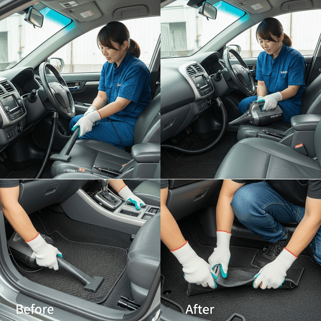内装の清潔感が査定の決め手。チャイルドシート跡・臭いの除去で高額査定。