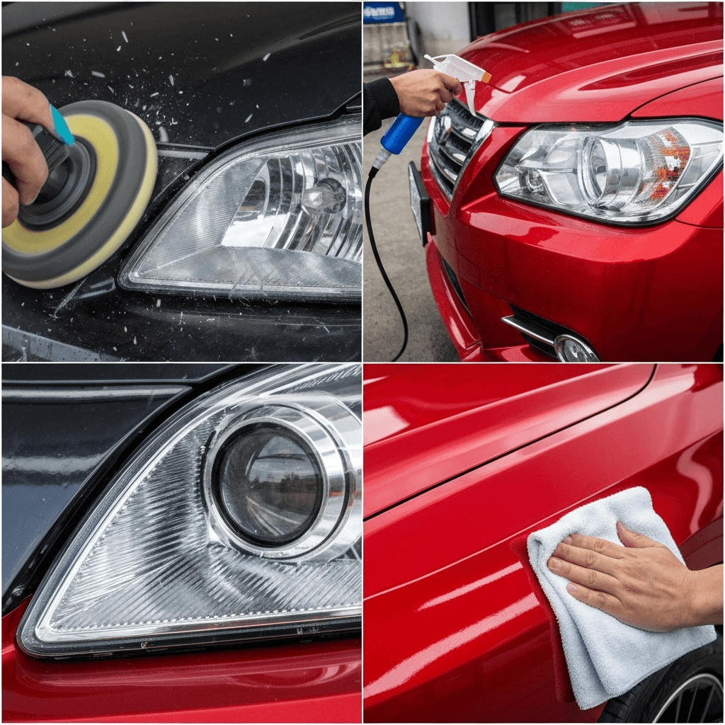 ヘッドライト黄ばみ除去+ボディ鉄粉除去で輝き復活!