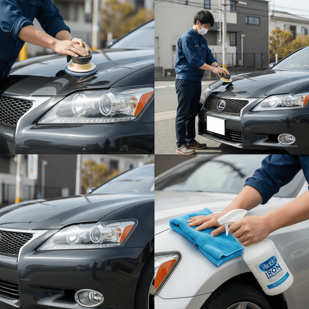 GSはヘッドライトの黄ばみとボディの鉄粉が第一印象を損ねます。研磨+鉄粉除去クリーナー+ワックスで輝きを取り戻せば「程度良好」と判断され+4~7万円の効果。