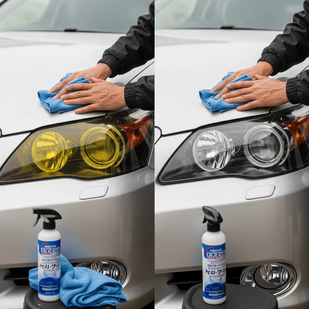 ヘッドライト黄ばみ除去で新車の輝きを取り戻す!