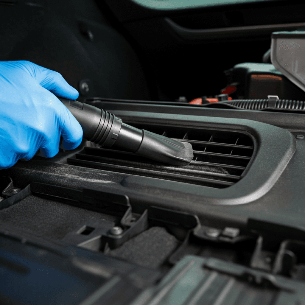 後席下・荷室の冷却ファン吸気口を掃除機で清掃。「バッテリー管理良好」の印象で+5万円UP。