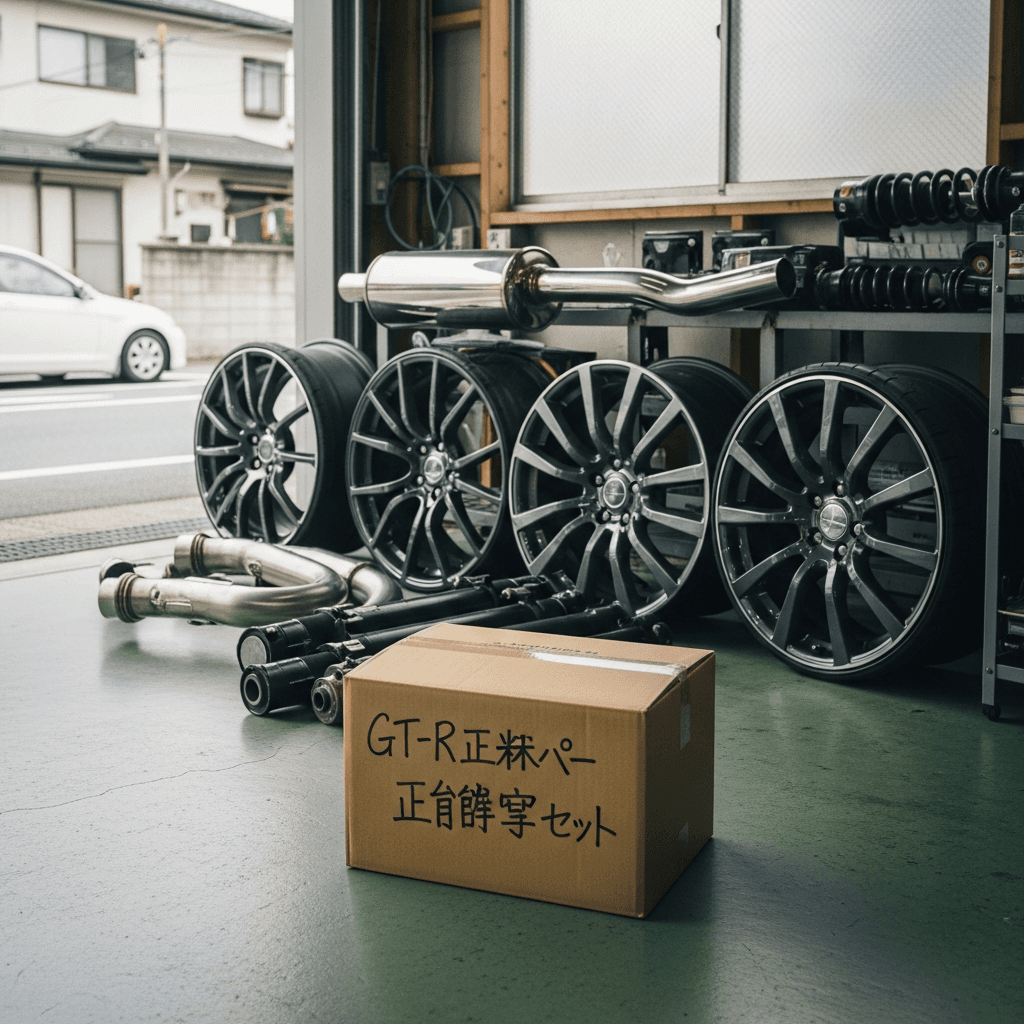 GT-Rはカスタム車両が多いですが、純正マフラー・サスペンション・ホイールが保管されていれば査定額は下がりません。「純正戻し可能」をアピールすることで+7~10万円の価値創出。