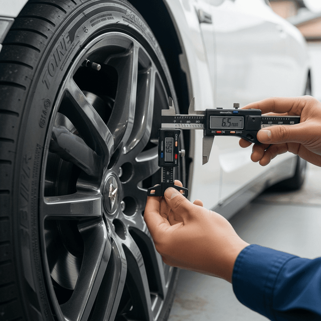 スポーツカーはブレーキとタイヤが査定の最重要項目。パッド残量6mm以上、タイヤ溝5mm以上を写真+ノギス測定値で証明すれば、「走行性能良好」の安心感を与え+8~12万円の評価UP。