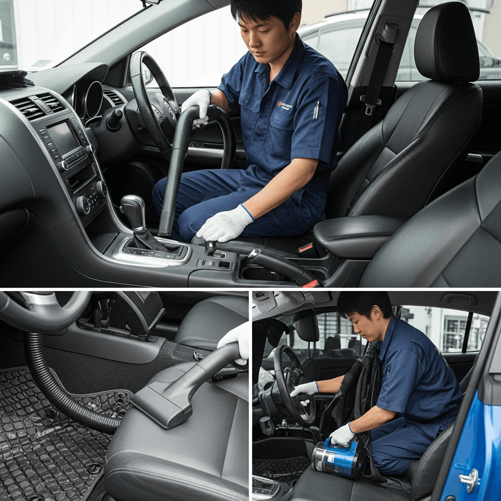 GTOは第一印象が査定の8割を決めます。シート隙間のゴミ除去、マット洗浄、樹脂パーツ艶出しで新車級の清潔感に。特に臭いゼロなら「禁煙車」扱いで+5~8万円UP。