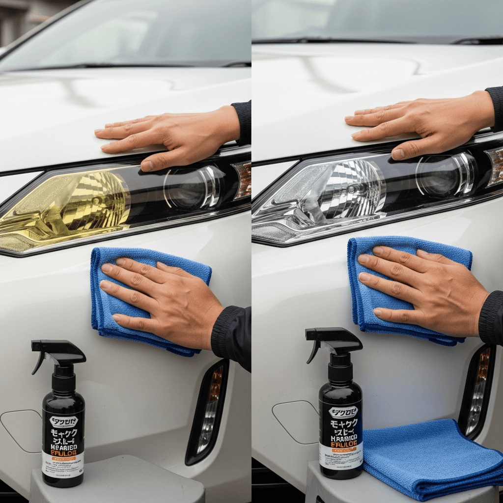 ヘッドライト黄ばみ除去で新車の輝きを取り戻す!