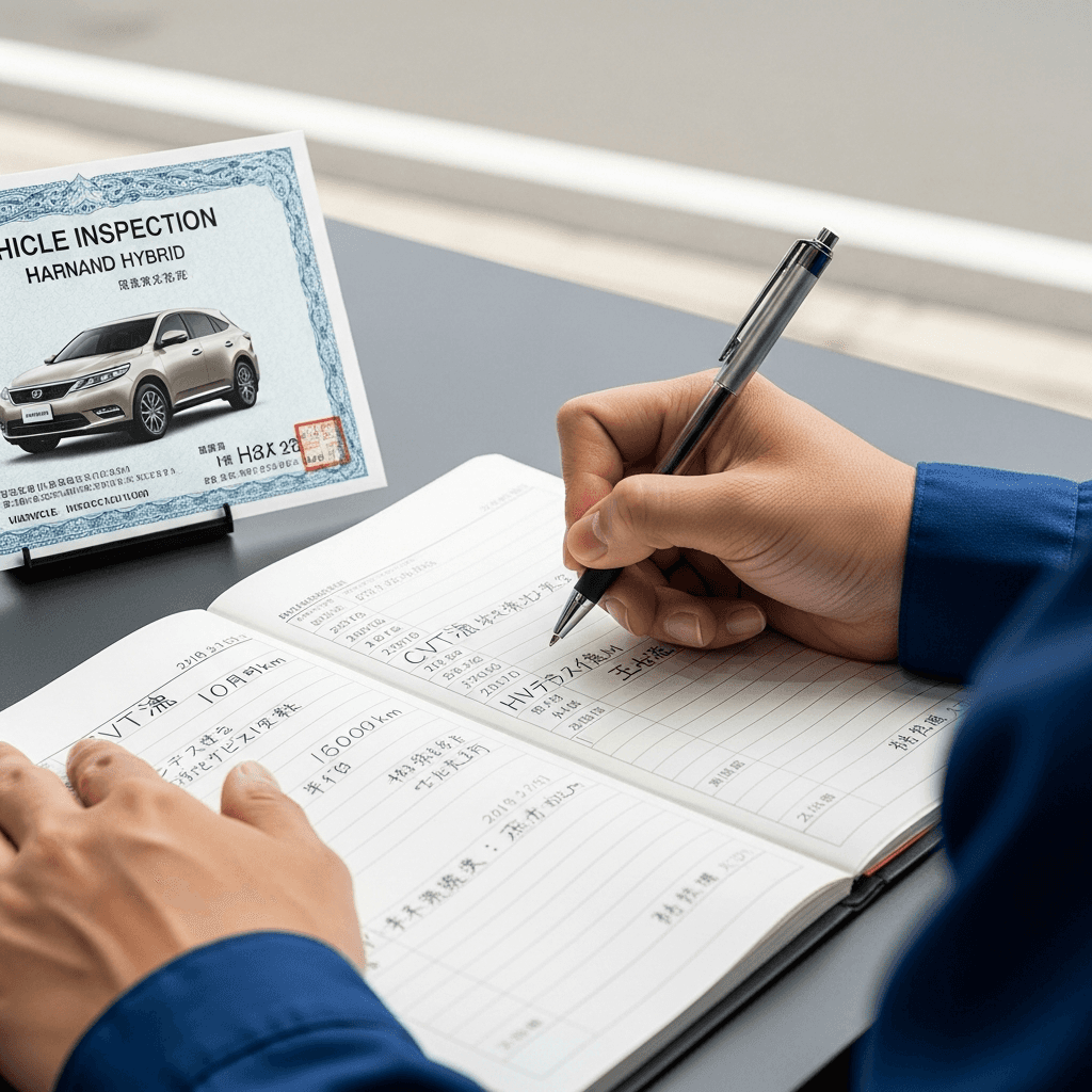 整備記録簿にCVTフルード交換やHVシステム診断の履歴を明記。特に「10万km時CVT交換済」「バッテリー冷却系点検済」の記載があれば査定士の信頼度が急上昇し、+6~10万円の価値創出が可能です。