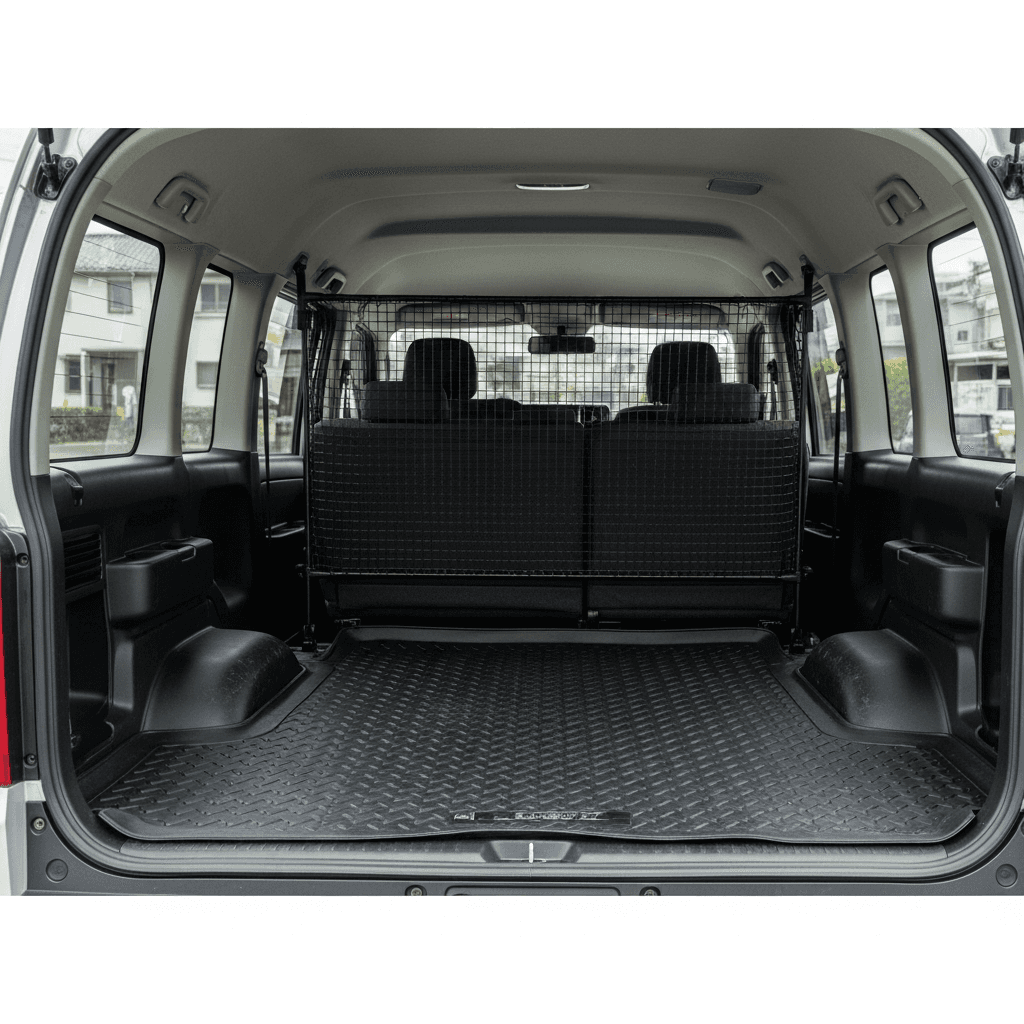 ハイエースコミューターは商用利用が前提。荷室に保護ゴムマット+仕切り板が装備されていれば「荷室ダメージ最小限」の証明に。実用性重視の商用車で+5~8万円の評価UP。